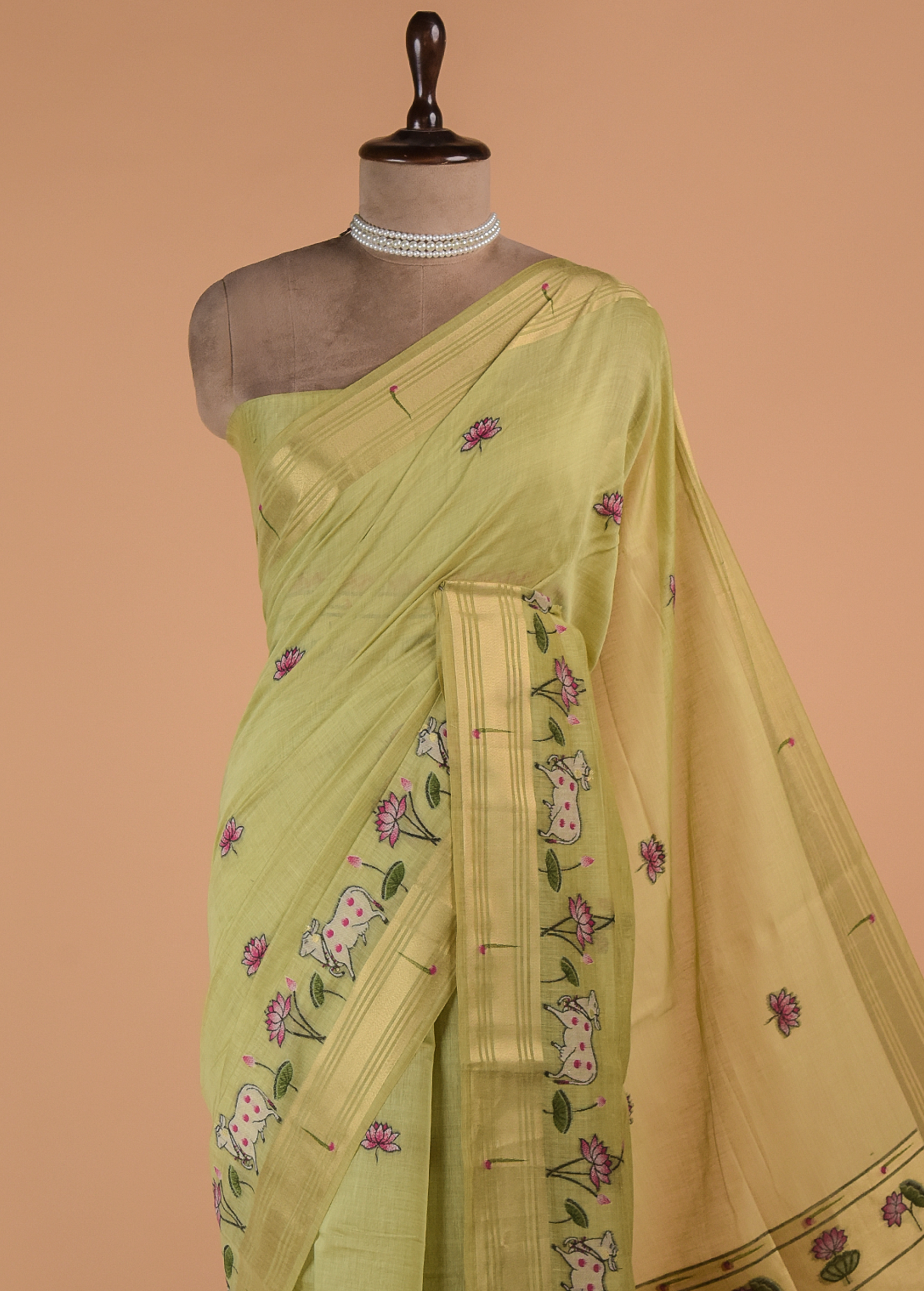Green Cotton Banarasi Saree