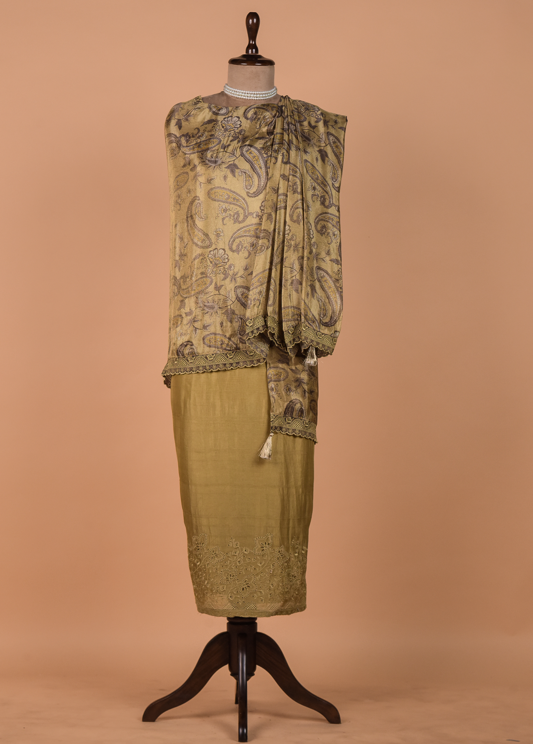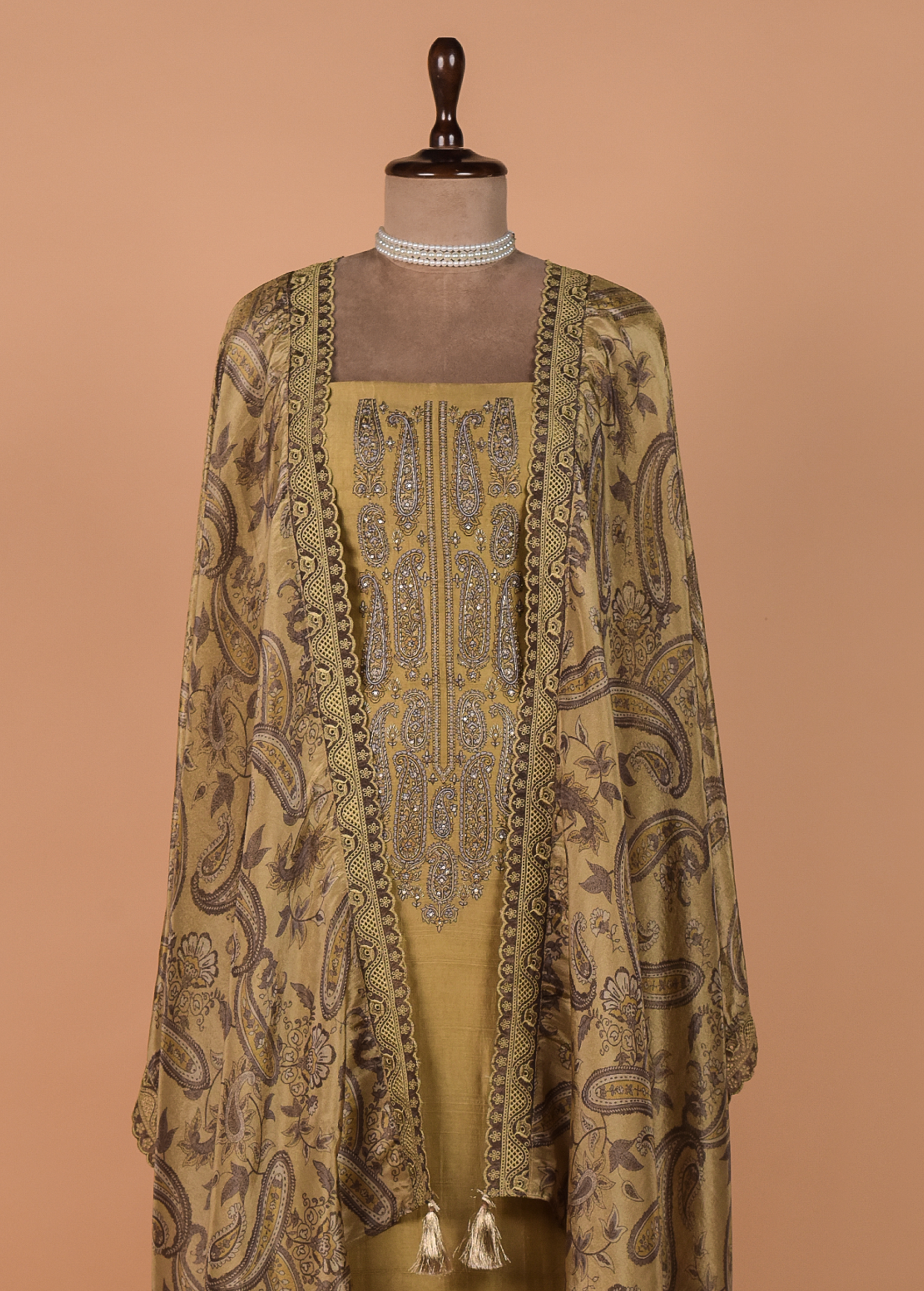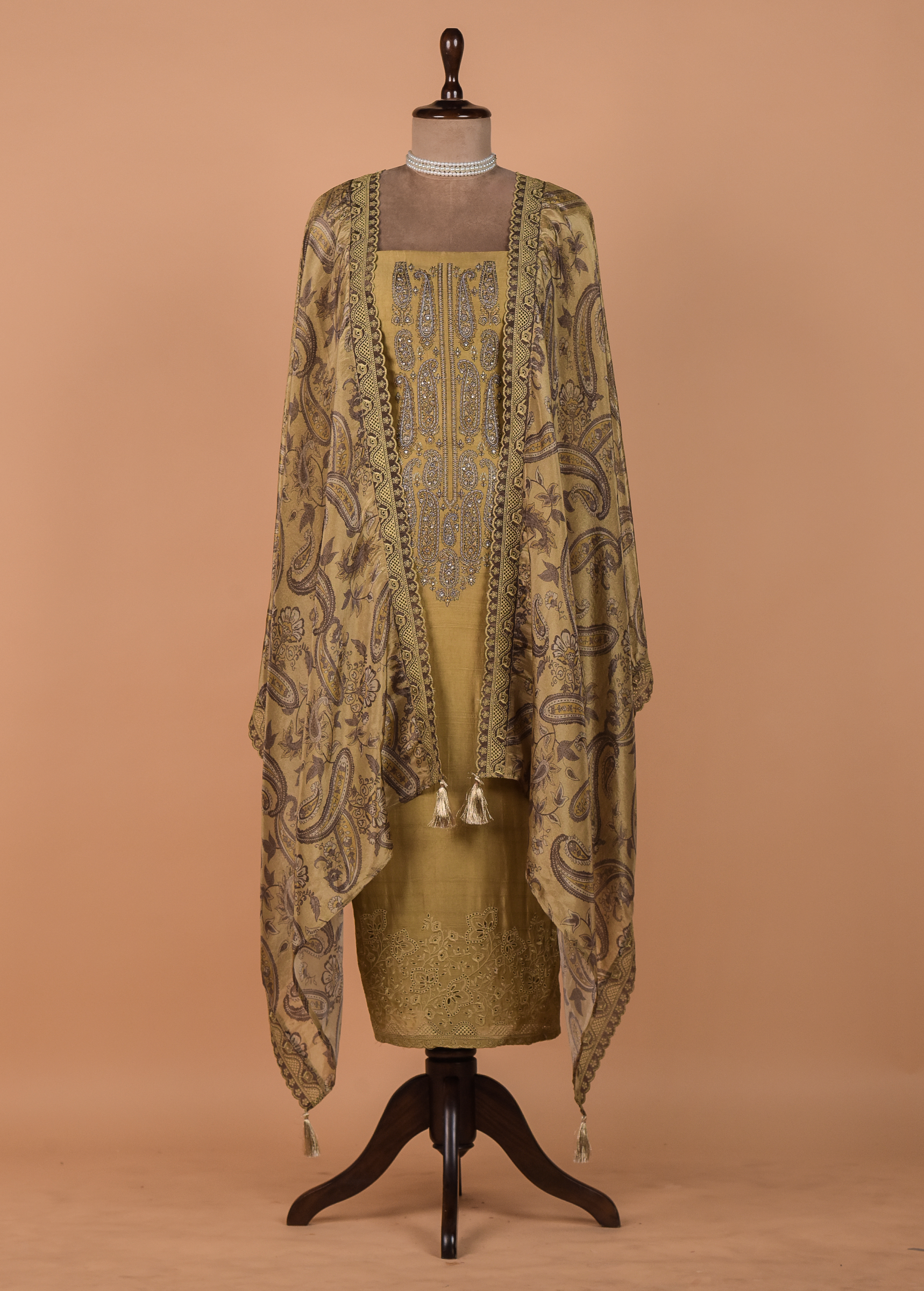 EMBROIDERED THREE PIECE SUIT SET WITH MATCHING DUPATTA AND BOTTOM