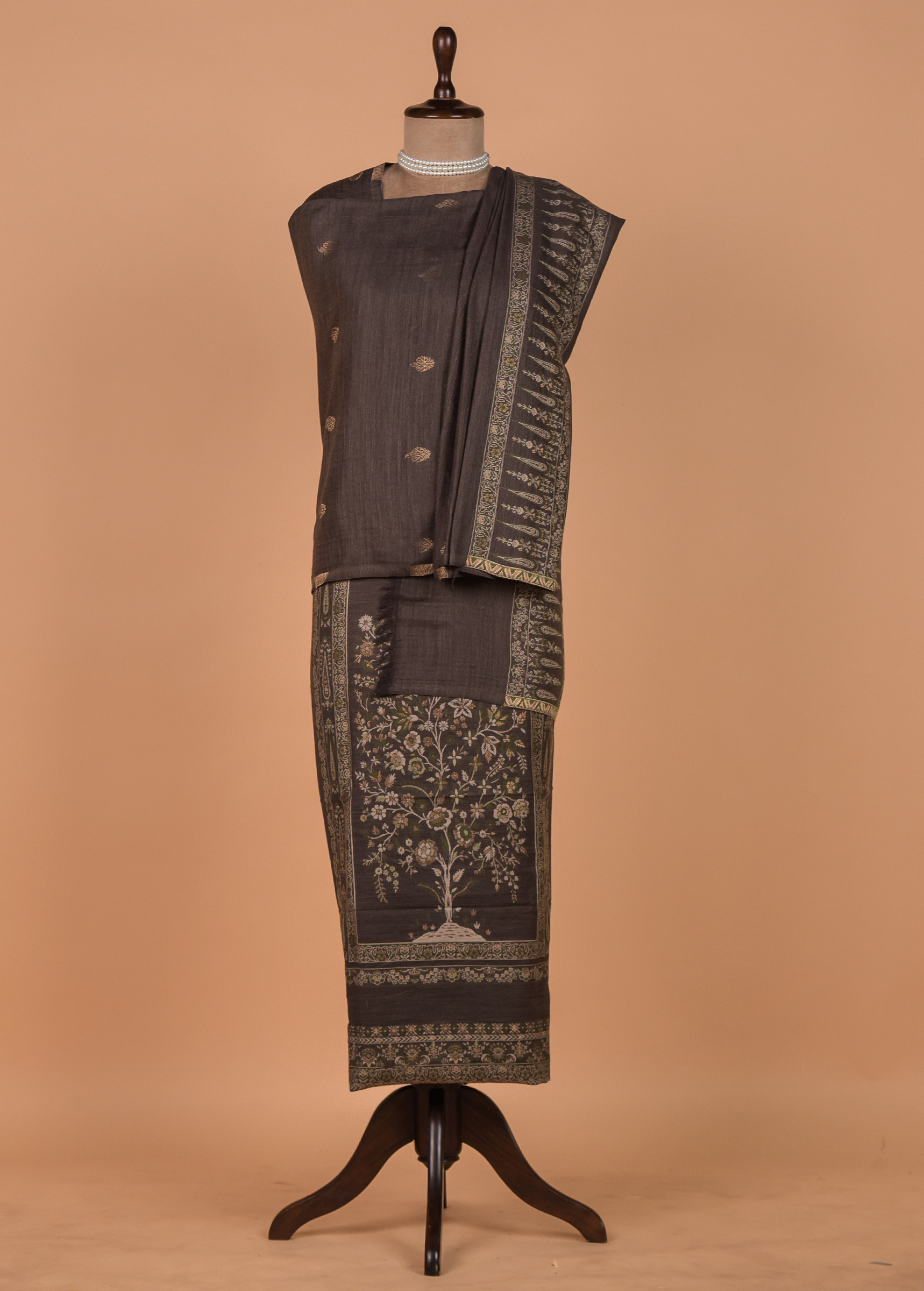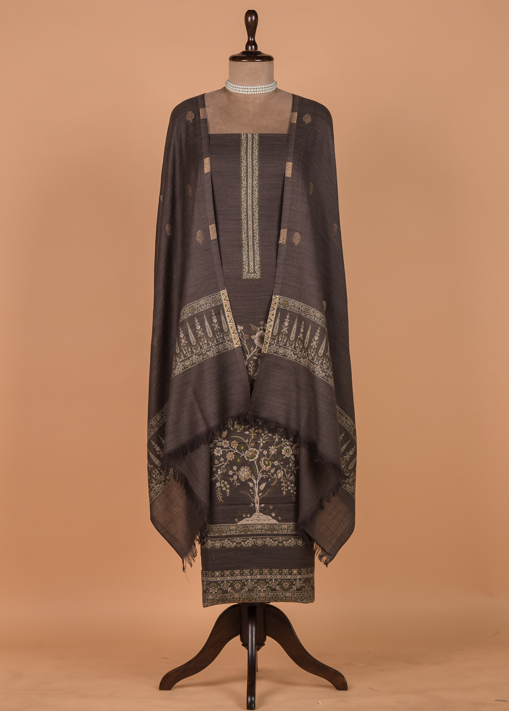 WOVEN THREE PEICE SUIT SET WITH MATCHING DUPATTA AND BOTTOM