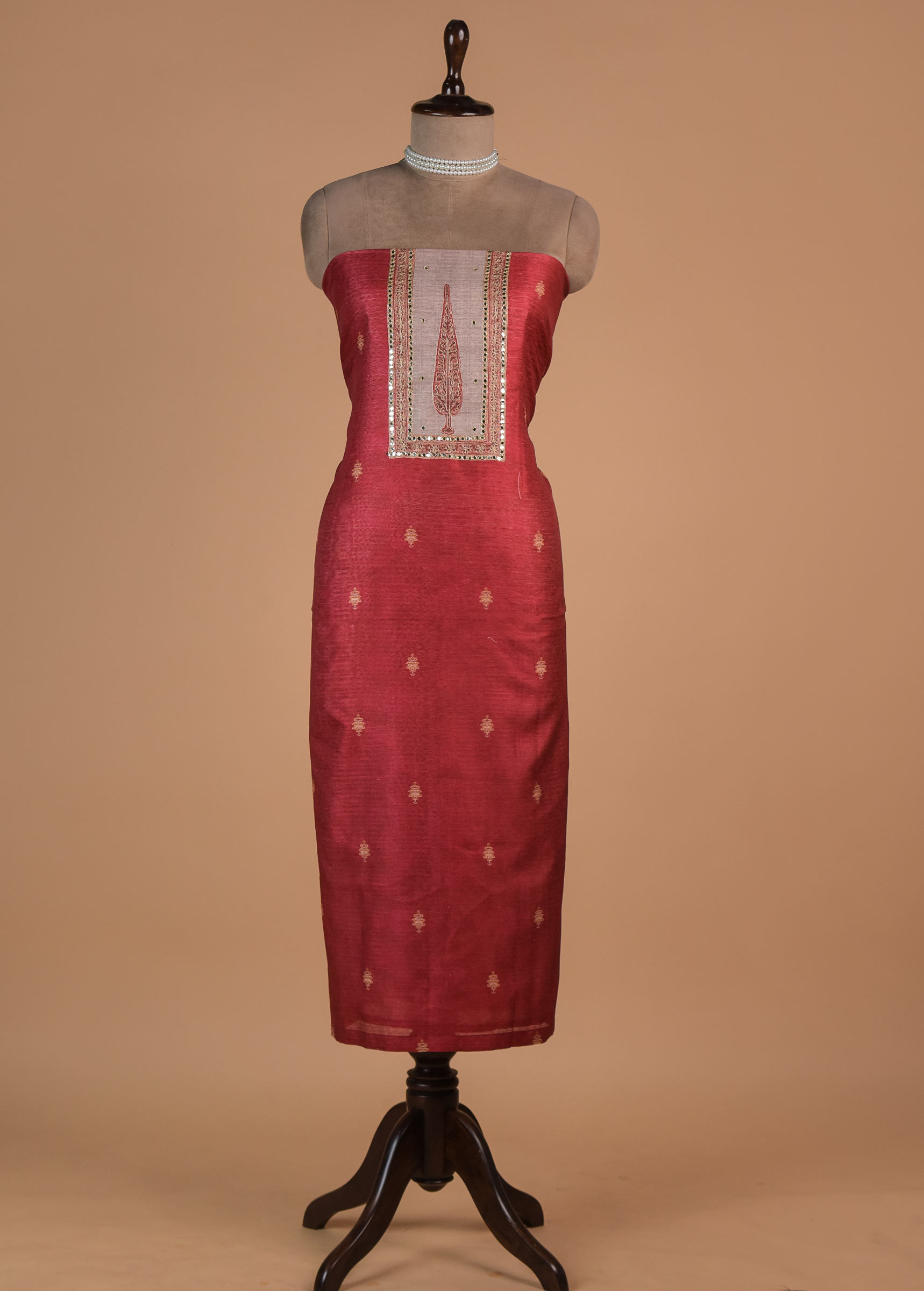 Red Chanderi Cotton Dress Material