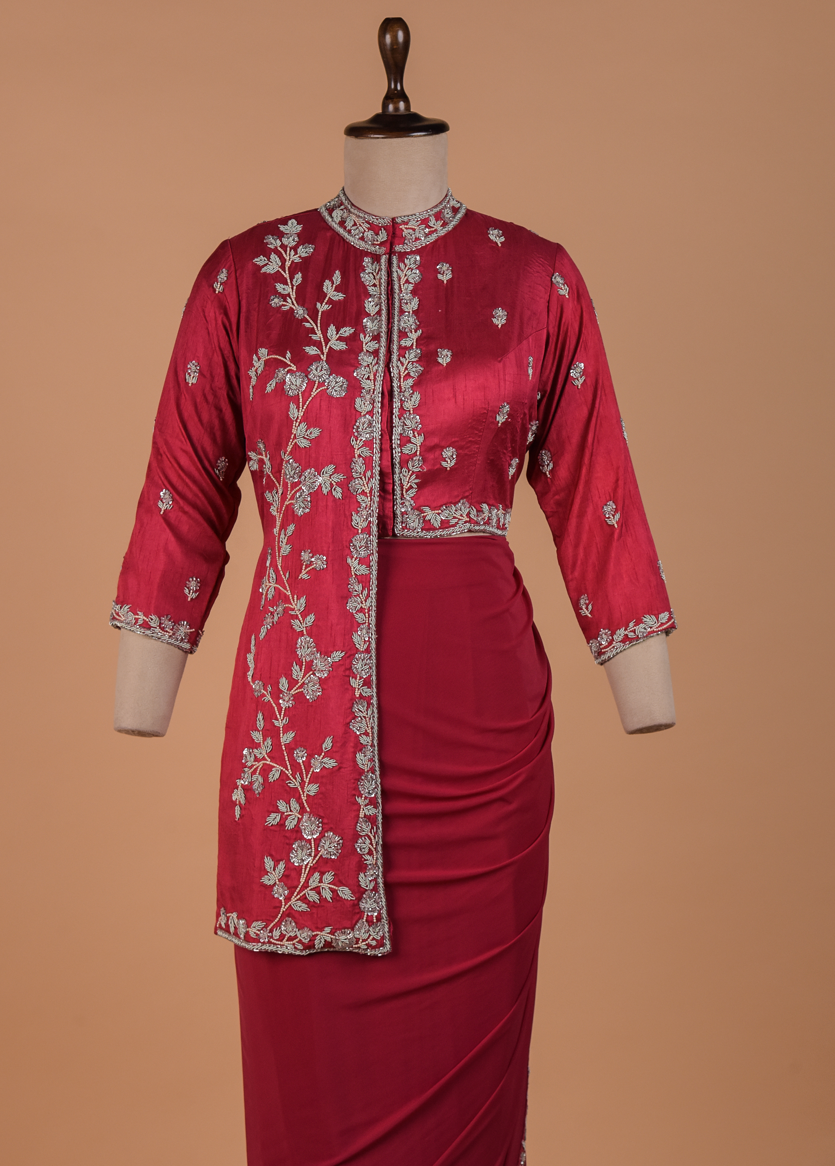 TWO PIECE READYMADE SAREE WITH JACKET STYLE BLOUSE ADORNING STUNNING DABKA EMBROIDERY