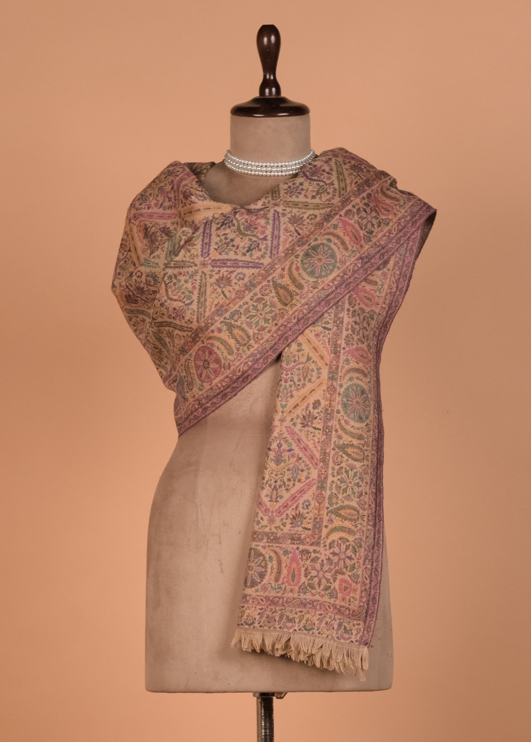 PASHMINA SHAWL WITH A MIX OF WOOL WOVEN IN MULTICOLOURED THREADS