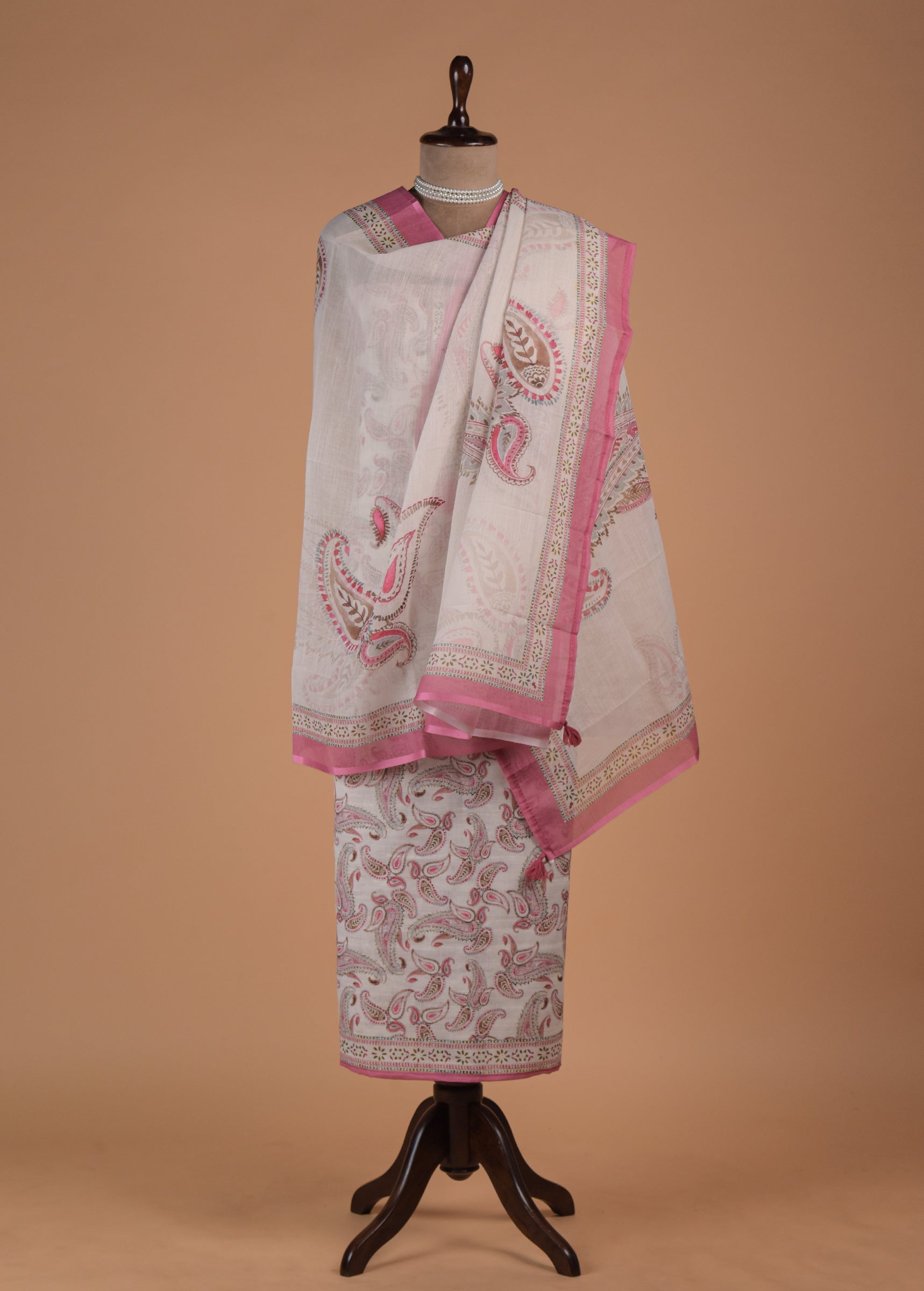THREE PIECE COTTON SUIT SET WITH BLOCK PRINT ADORNING A MATCHING DUPATTA AND BOTTOM