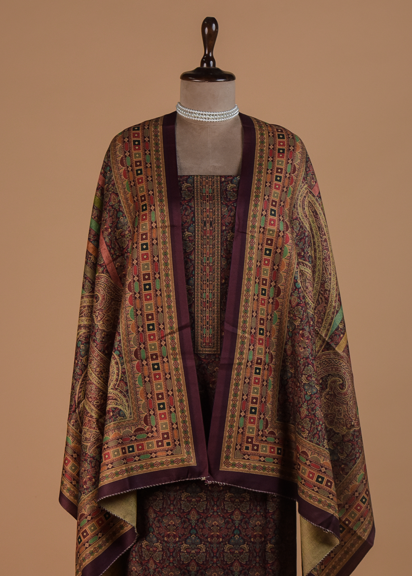 Wine Pashmina Dress Material